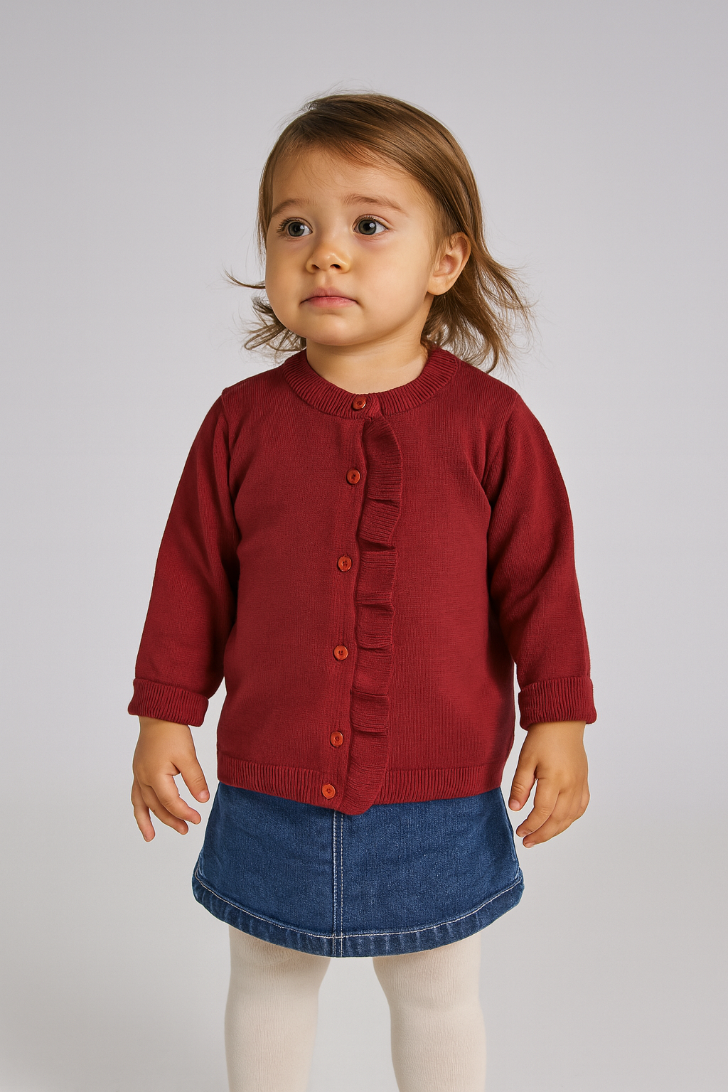 Kız Bebek Triko Fırfırlı Hırka 6-24Ay Kırmızı
